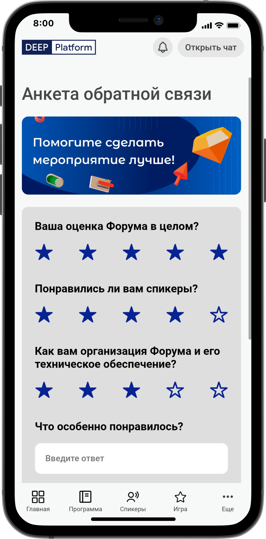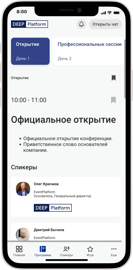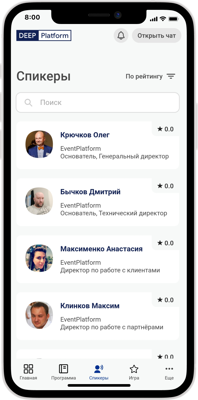 ▪ Contacts — списки телефонов работников, партнеров, организаторов и экстренные номера.